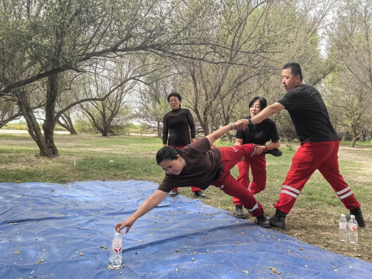 此外,活动还安排了踢毽子、摸石过河、智传呼啦圈等趣味活动。在踢毽子活动中,队员们围成一圈,毽子在他们之间上下飞舞,欢声笑语不断;摸石过河时,队员们小心翼翼地踩着“石头”(道具)前进,充分展现了智慧与技巧;智传呼啦圈活动中,大家手拉手,通过身体的协调配合传递呼啦圈,气氛热烈而融洽。这些活动不仅让队员们在紧张的徒步和学习后得到了放松,更重要的是锻炼了大家的团结协作能力,让队员们更加深刻地体会到了团结协作在实际工作中的重要性。