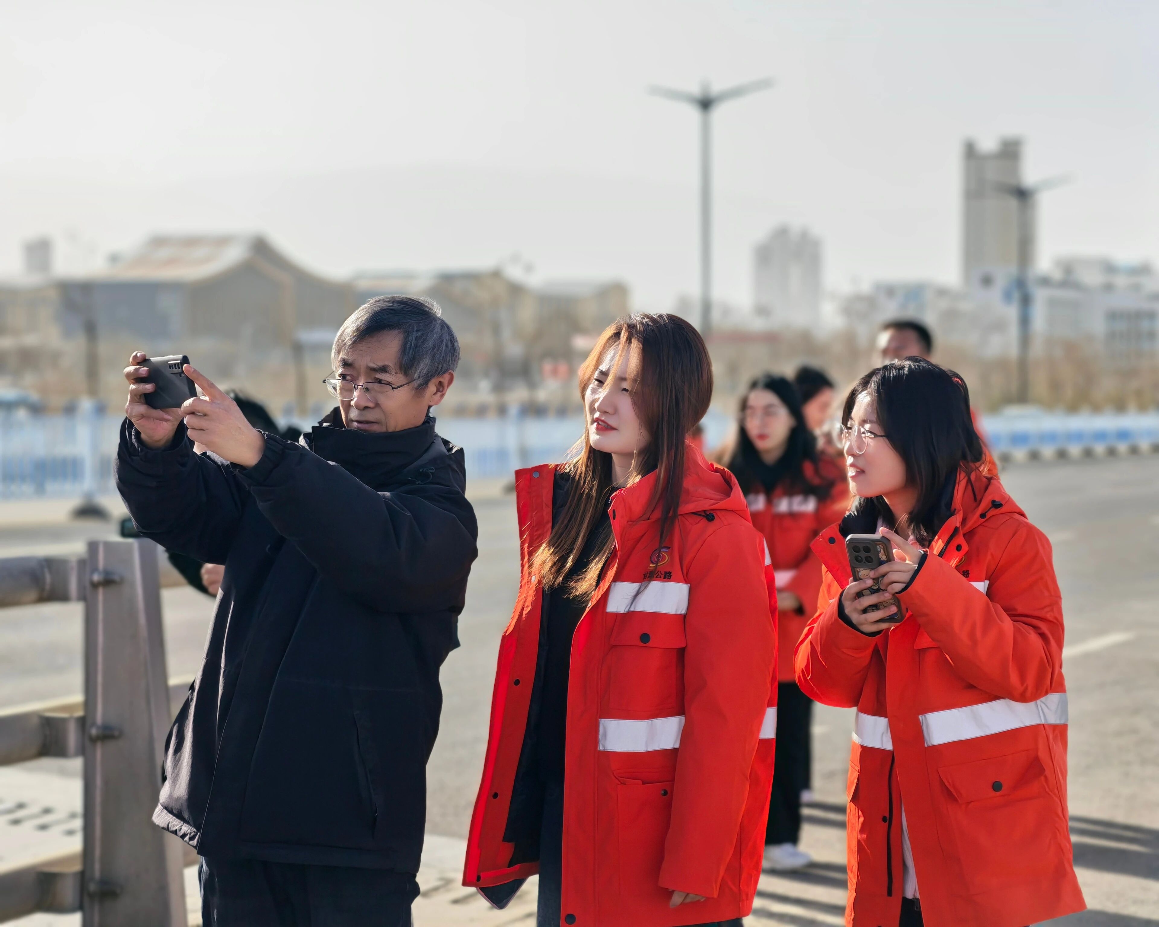 实践拍摄,学以致用展风采。“纸上得来终觉浅,绝知此事要躬行。”理论授课结束后,组织参训人员深入辖养路段开展实践拍摄,将课堂所学转化为实操能力。大家手持相机、手机,聚焦辖养公路沿途风景,在实操中摸索构图与光影的运用,互相交流拍摄心得。姜老师则现场指导,针对大家拍摄中遇到的问题逐一答疑解惑,手把手纠正拍摄角度、调整参数设置,帮助职工找准拍摄技巧,拍出高质量作品。