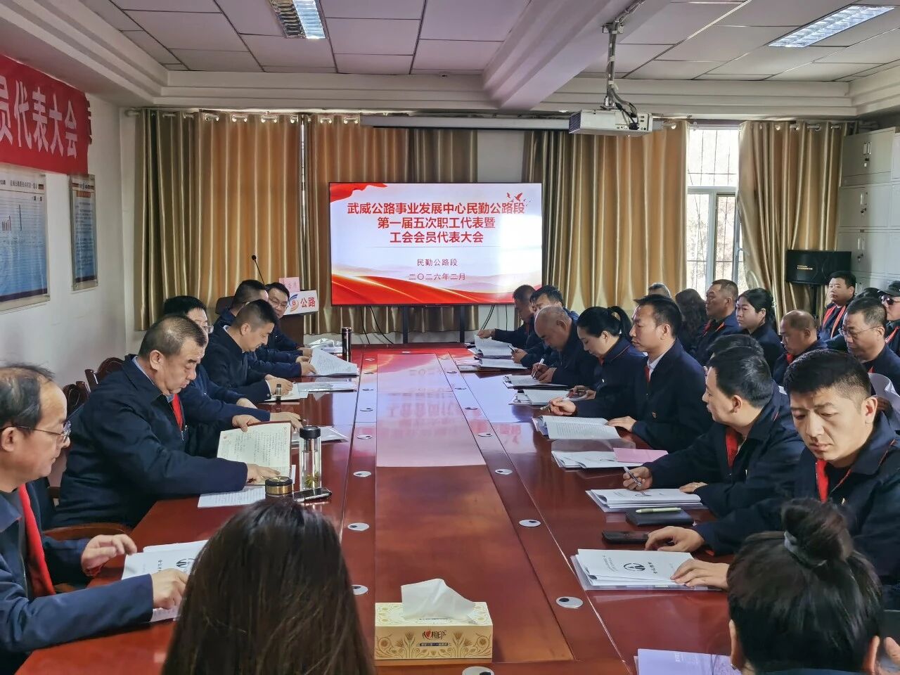 春潮涌动启新程,凝心聚力向未来。在“十五五”规划开局的关键节点,武威公路事业发展中心民勤公路段第一届五次职工代表暨工会会员代表大会在庄严的国歌声中隆重召开。会议全面总结2025年工作成效,科学部署2026年重点任务,为沙乡公路养护事业高质量发展谋篇布局、凝心赋能。