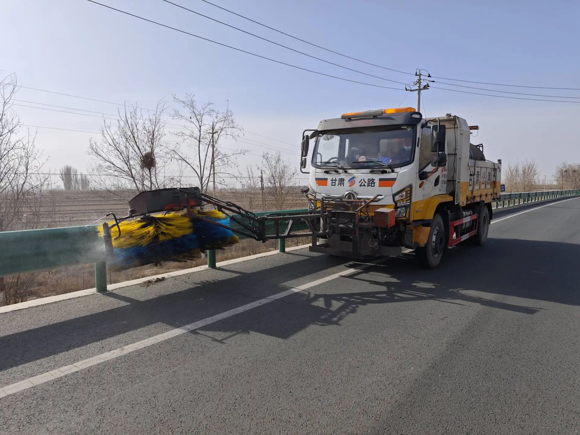 三月的民勤,春意渐浓,风沙与暖阳交织。为全面提升路域环境品质,筑牢公路安全防线,3月18日,武威公路事业发展中心民勤公路段抢抓春季养护黄金期,全面启动辖养S603深骆线、G569民左路波形护栏板专项清洗作业,以“绣花功夫”为公路“美颜”,为群众出行保驾护航。