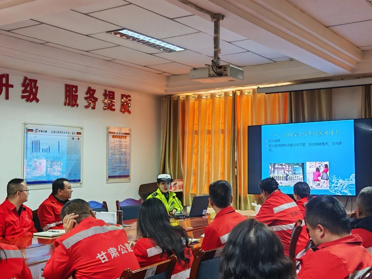 本次冬训理论环节聚焦核心安全领域,加强路警联合,邀请凉州交警资深警官结合冬季养护特点与典型事故案例,深入讲解了作业区安全规范、车辆行驶要点、恶劣天气应对措施;重点剖析了酒驾醉驾的严重危害;并现场演示指导了标准交通指挥旗语的动作要领、适用场景及安全站位,确保一线人员熟练掌握;同时,来自养护一线的资深骨干结合亲身经历,分享了日常巡查和作业中易被忽视的安全隐患实例,以“身边事”警示“身边人”,有效强化了全员风险辨识与防范意识。