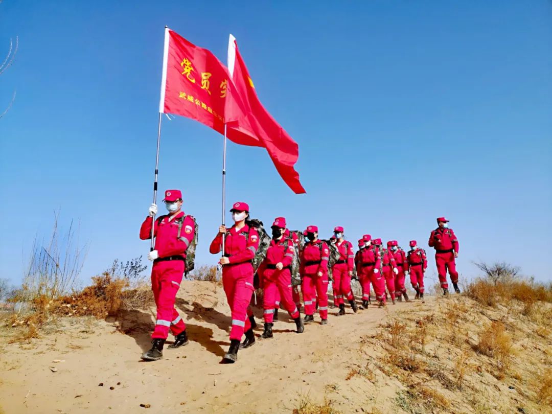 “加”压,共练钢铁意志。2022年4月8日早8点,沙漠公园大门口,负重10公里沙漠公园拉练正式拉开了帷幕。拉练途中,松软难行的沙漠与猎猎红旗相伴,高昂的士气与奋进的脚步同行,烈阳高照,没有一个人掉队,真正践行了公路人逢山开路、遇水架桥、艰苦奋斗的“八棵树”精神。在漫漫黄沙中,通过相互协作穿越沙漠,切实提升了应急队伍在野外应急抢险时的适应能力和团结互助能力。