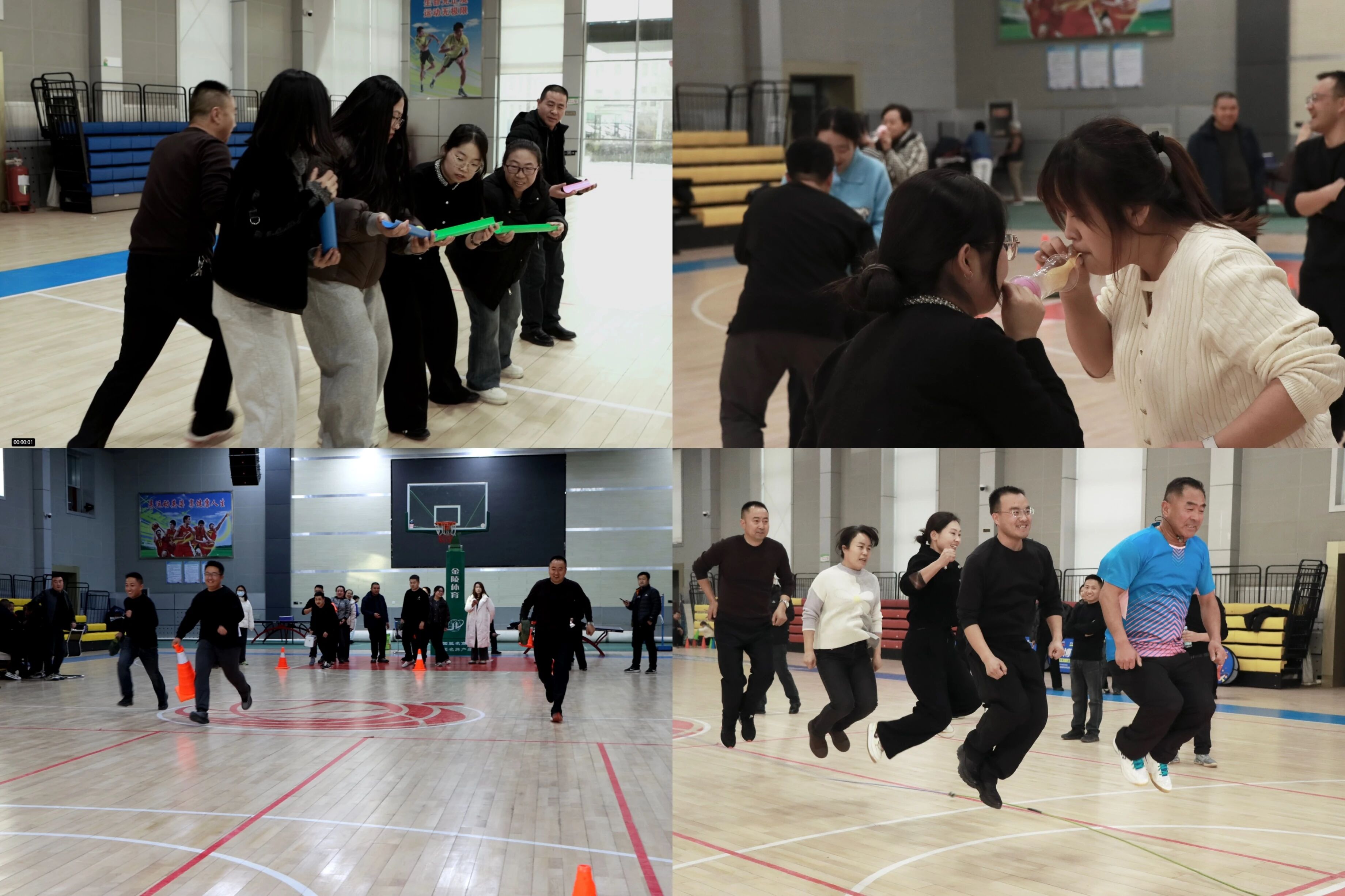 运动场上各赛区分工明确,精彩纷呈。篮球场与乒乓球台前,职工们身形矫健、你来我往,每一次精准投射与巧妙回球都引来阵阵喝彩;棋类赛区则弥漫着沉着与智慧,参赛选手凝神静思,在方寸之间展现出智慧与谋略的魅力,吸引了众多观众驻足观战;跳绳项目紧张活跃,个人跳绳争分夺秒,集体跳绳默契配合;而最为热闹的当属趣味团体项目,气球接力赛、携物接力赛等项目,团队成员紧密协作、彼此鼓舞,欢笑声、助威声、呐喊声充满了整个场馆。