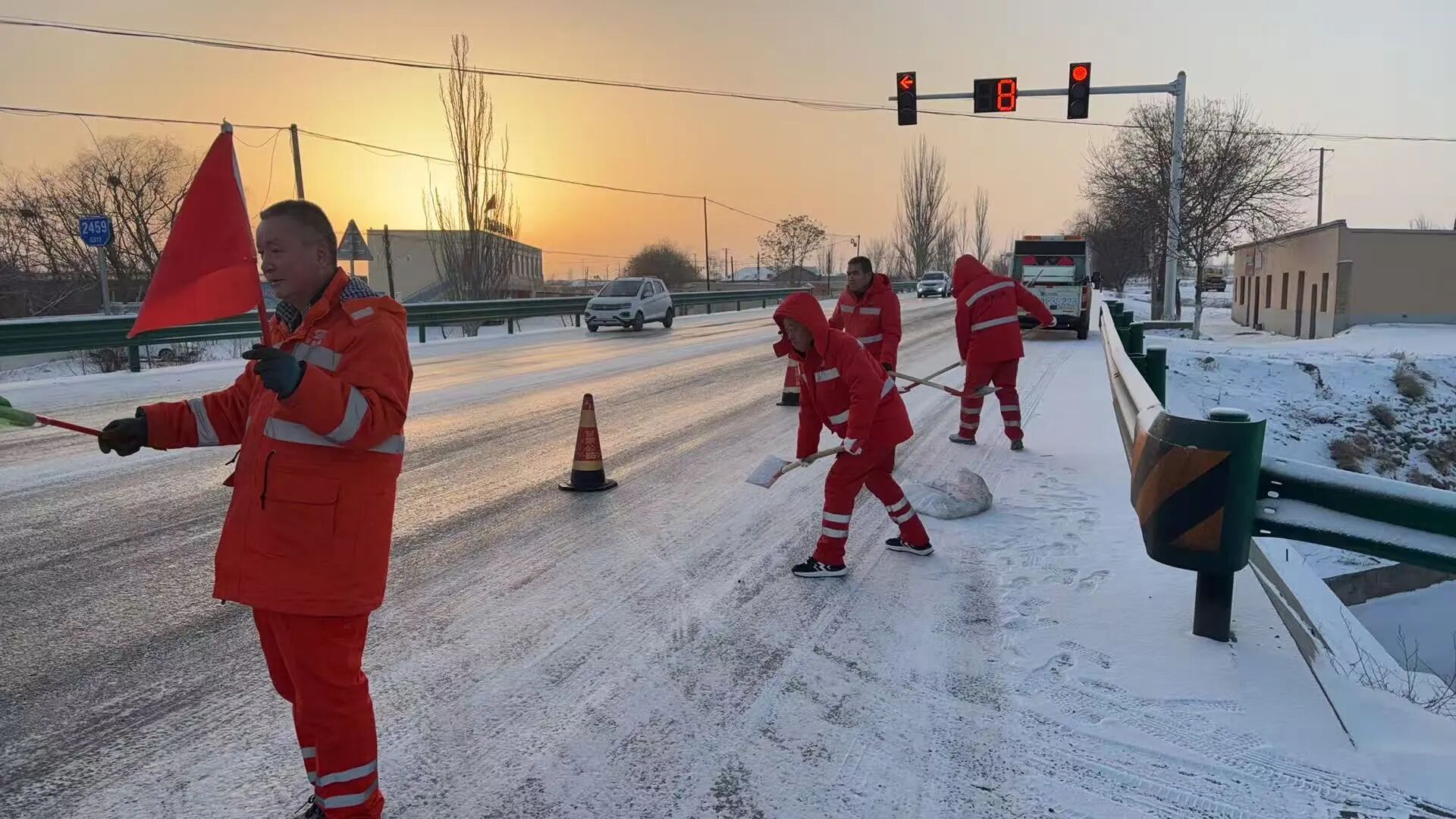 时刻准备,风雪就是命令。每年冬天下雪最密的时候,也是张旭元最忙的时候。有一回除雪,他的关节炎犯了,疼得厉害,却硬是一声不吭,和大家奋战了一天一夜。直到第二天清晨,公路如常干净畅通,他和队友歇下来,才想起去看自己的腿。又一场雪落下来。妻子知道,只要是风雪天,他一定在路上。那晚孩子突然不舒服,她没打电话,自己骑着电动车,顶着雪把孩子送去医院。“她怕我分心。”张旭元说起这事,眼眶还是红的。家人的理解,他装在心里,化成路上更沉的劲。
