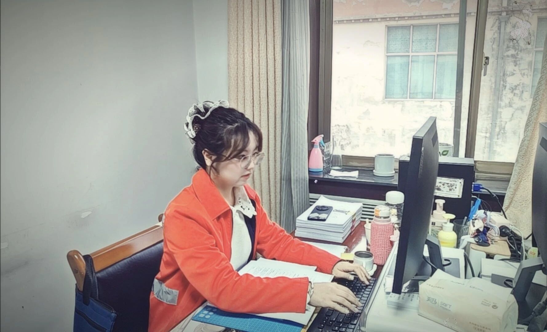 周紫君的办公桌上,总是堆叠着厚厚的档案盒。