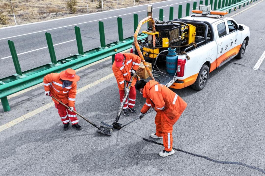 多措并举提路况。年初安排各单位扎实开展路况调查,精准制定公路养护方案,为全年养护工作开展提供坚实支撑。结合春季路面灌缝工作实际,组织开展“理论+实操”的路面灌缝竞赛活动,通过职工互学互鉴,切实练就灌缝“硬本领”。中心各单位积极优化组织管理模式,改进路面灌缝工具,创新改装沥青加热洒布设备、“谷仓漏斗式”胶盒,实现了施工效率与精准度的双重提升,较大地提升了公路养护质量。目前,共完成路面灌缝30.71万米,路容路貌整治458公里,清理疏通边沟62.47公里,更换维修护栏328米,清理垃圾583.8立方米,服务群众出行品质持续提升。