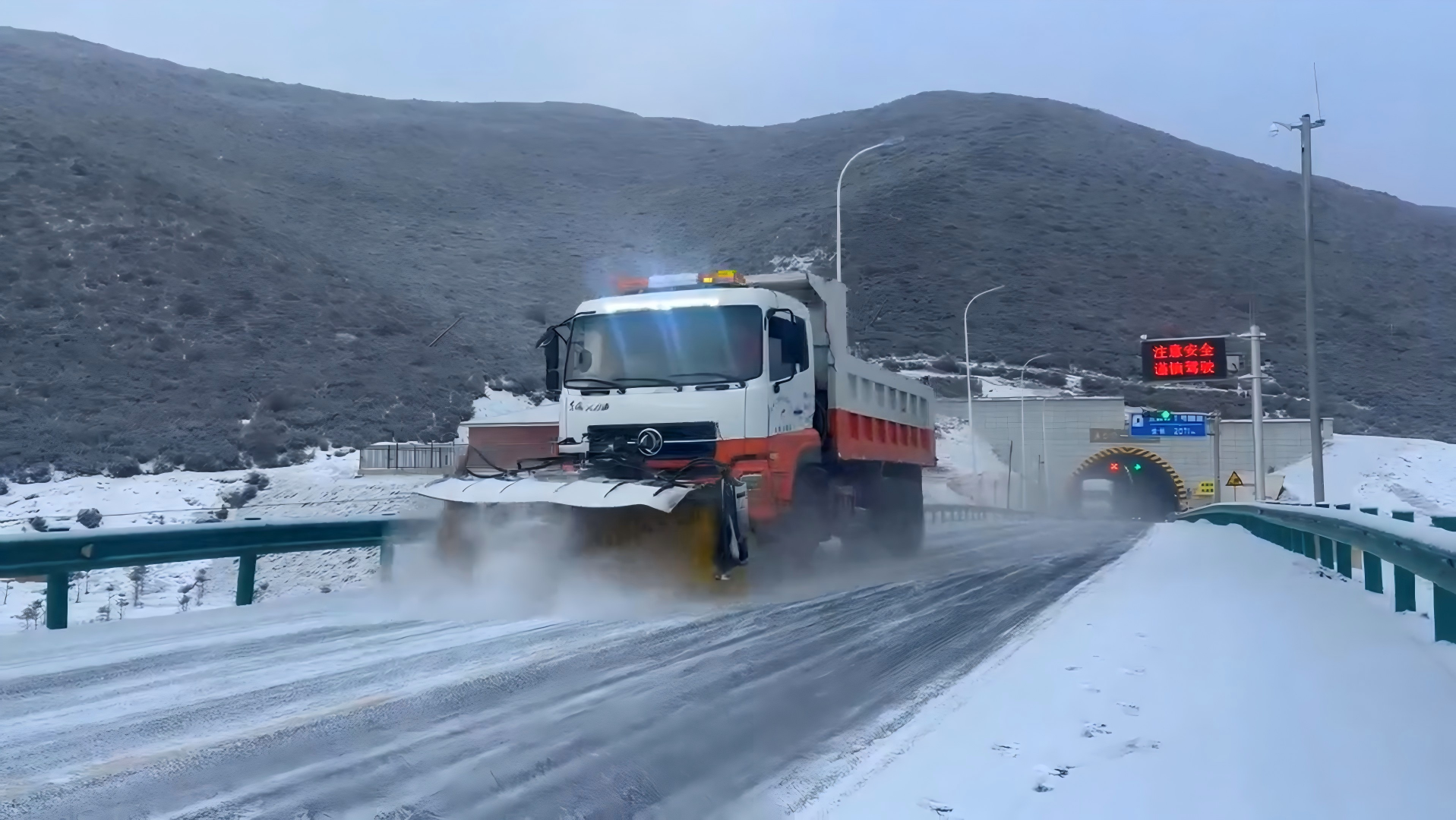 11月16日夜间,随着强寒潮天气过境,武威天祝境内G312线乌鞘岭路段、G338线五台岭路段遭遇降雪天气,路面出现积雪,给过往车辆通行带来安全隐患。武威公路事业发展中心第一时间启动应急保畅预案,抢抓降雪初期路面未结冰的“黄金处置期”,于11月17日清晨迅速开展路面除雪保畅作业,全力守护国省干线公路安全畅通。
