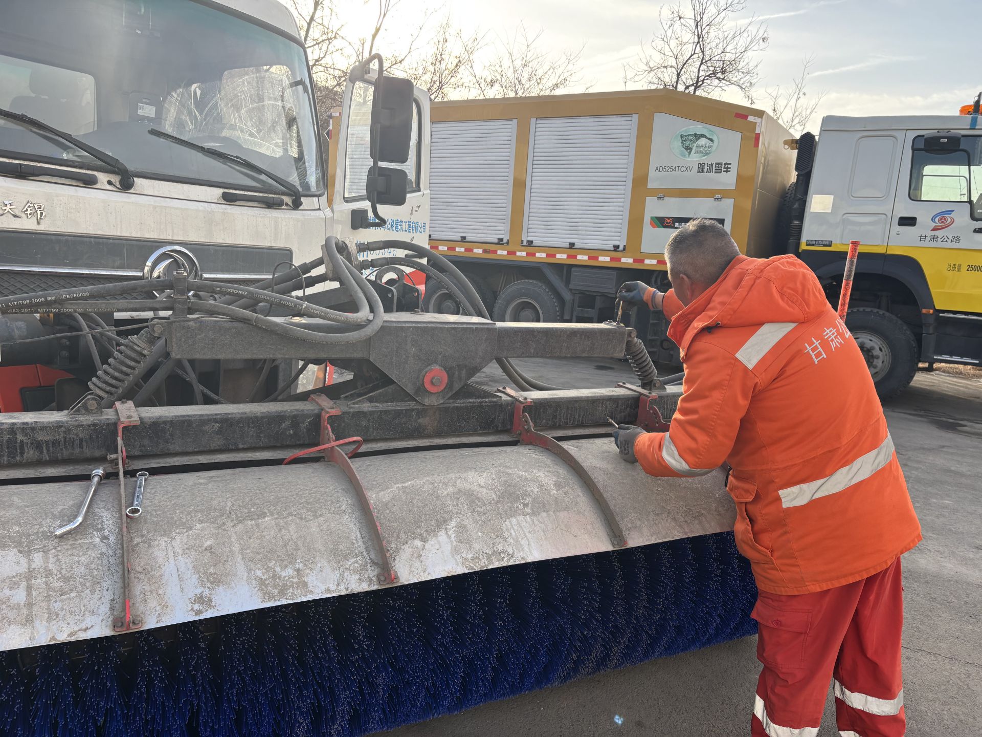 未雪绸缪,筑牢备战根基。秉持“先事而备,有备无患”的理念,武威中心严格按照《甘肃省交通运输厅国省干线公路低温雨雪冰冻灾害防滑保畅工作指引(试行)》,层层压实工作责任,细化工作举措,确保各项防范措施到位、执行落地见效。各养护单位快速响应、高效行动,应急保畅队伍提前入驻应急保畅点,做好融雪剂、防滑料等应急物资储备工作,对除雪车、融雪撒布设备等完成全面检修调试,确保随时处于临战状态。