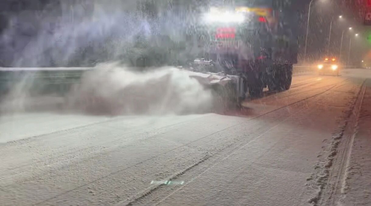 应急工作群的消息不断刷新:“乌鞘岭小雪,路面无积雪,正在急弯、背阴路段预撒融雪剂。”“五台岭中雪,除雪防滑作业同步推进。”一条条信息,记录着公路人与风雪赛跑的每个瞬间。从夜幕降临直至深夜,除雪机械的轰鸣声回荡在山谷,养护人员身着橘色工装,在雪夜中格外醒目。他们踩着积雪巡查隐患,握着铁锹清理边角,以随下随清的效率,守护着道路的安全畅通。