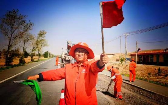 在油路修补现场,有一位戴着“红袖章”,一脸严肃地挥舞着指挥旗的小伙正是我们的安全部部长姜有荣,今年3月他迎来一位小公主,妻子当时是剖腹产,身体受损较大,但当时安全部工作多,责任大,在面对家庭和工作的两难境地时,他毅然决然地选择了工作,陪护假他仅仅只休了7天就返岗工作了,领导和同事们都劝他回去再照顾一段时间家人,他却摆摆手说“妻子和孩子现在已经出院了,有父母照顾,我放心,现在是养护工作最紧张的时间,我不能离开岗位,别看这个安全员不起眼,身上的责任可不小,我能守护整支队伍的安全呢”他每天早晨6点出发布置好作业现场,指挥交通,等到回来已是晚上9点了,原本就有花白的头发在泥土的晕染下变成了棕色,但谈到一天下来修补的数量时他却难掩心中的喜悦。